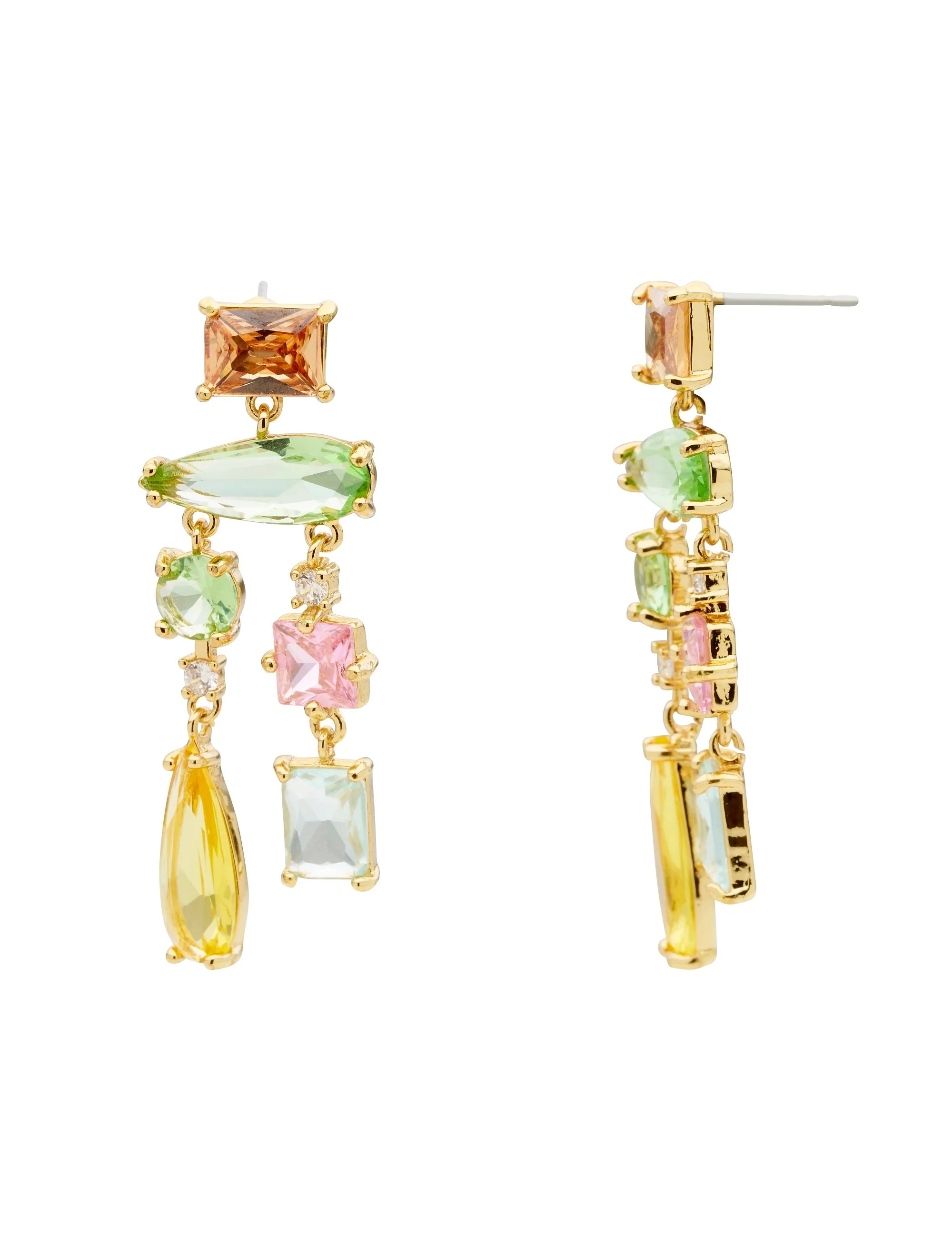 The gorgeous Kaleidoscope Earrings from Amelie are perfect for dressing up daytime looks or finishing your evening outfits with unique style and stunning colour. These eye-catching drop earrings feature mixed multi-coloured faceted stones, adding statement colour and sparkle to any ensemble.