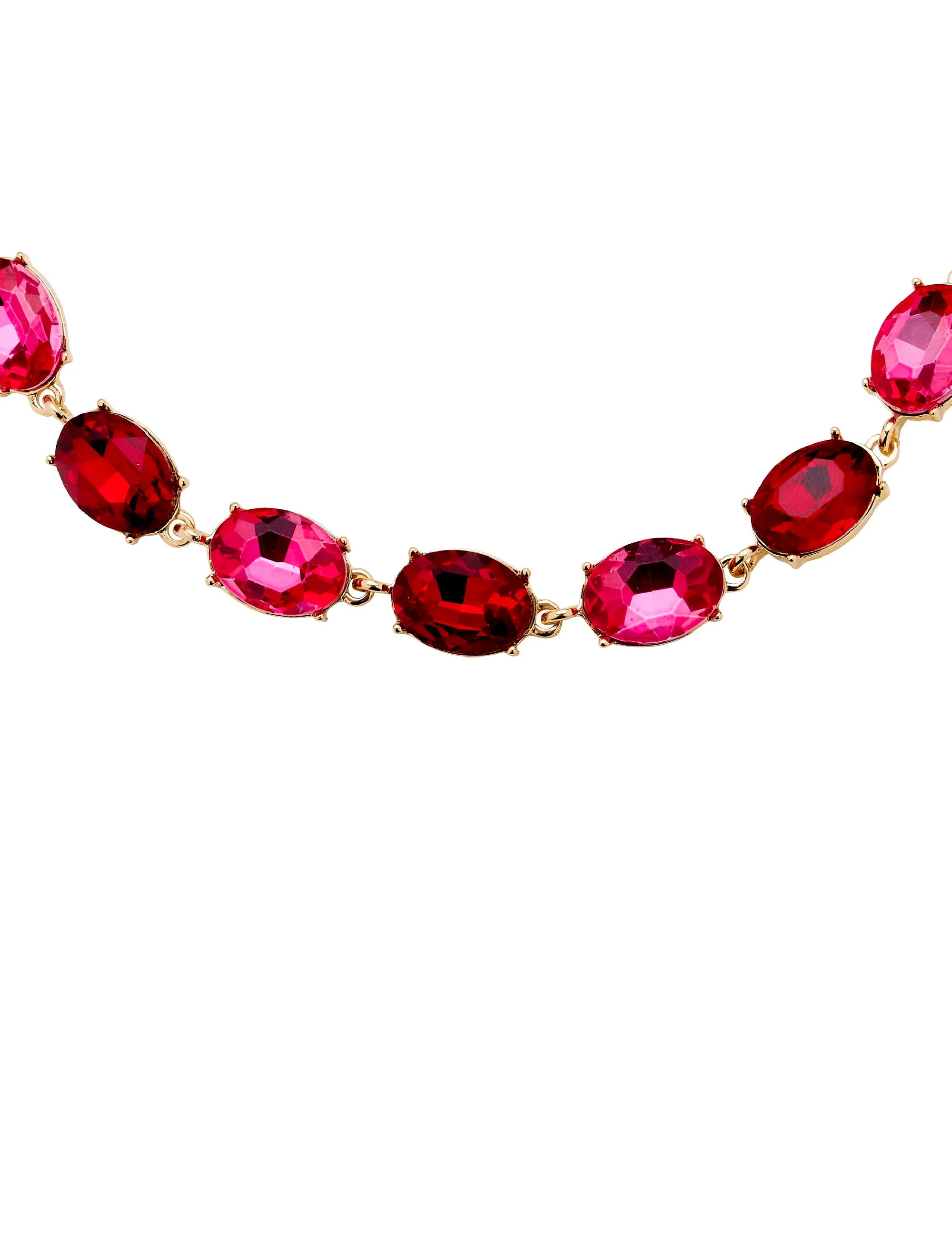 The Amelie Weekender Stone Necklace is a stunning choice to complete your look. With deep berry tones of pink and purple, this necklace feature faceted oval stones set in gold-coloured plating, bringing rich colour and an elegant touch of sparkle to day or evening outfits.